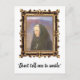 Det här vykortet visar ord "Säg inte åt mig att le" med en målning av en kvinna som bestämt inte ler.