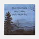 En vattenfärg i ett kvällsbergsperspektiv säger: "Bergen ringer och jag måste gå!" Anpassa genom att ändra texten, om du vill!