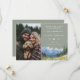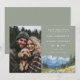Detta eleganta akvarell berg vilda blommor bröllop save-the-date-kort kan anpassas med ditt foto och information i modern typografi på en salvia grön bakgrund. Designad av Thisisnotme©