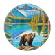Se ett stort bergbjörn med en serene sjö. Bilden fångar vildmarkens skönhet. Utforska den här scenvyn i bergen (den här designen gjordes med AI). Ställe beställer i dag och Kämpa på köpet!