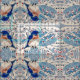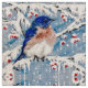 En blåsångare sitter lyckligt i a bland st-järnekbär under en snowstorm. Tyget avbildar skapades från en original- målning av den internationella konstnärJennifer sjön.
