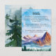 Kortet är designat med berg, vatten, tallar och blå himmel i akvarell. Du kan redigera alla textdetaljer. Baksidan av kortet har en närbild av tallskogen. Du kan lägga till de detaljer du behöver, till exempel: information om mottagning, endast vuxna-event, webbadress, registreringsinformation, boende, klädkod, kontant bar, etc. Ordet "Detaljer" kan ändras till Mottagning, Boende, Information, etc. Detta kort matchar en bergshustru-kollektion i min butik.