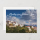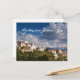 Postkort och hälsning från en vacker spansk bergsby i Sierran Nevadasbergen i Andalusien (Andalusien) i Spanien vid sommartid. Texten lyder "Hälsning från Andalusien, Spanien" och det är helt anpassade.