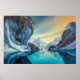 Oljelandskapsmålning stil i Roger Dean i ett bergsområde som är täckt av snö med ett öppet sjö som återspeglar bergen och himlar. Skapad med generativa algoritmer och Photoshop. Det här är ytterligare 100 % originaldesign för Snughamster.
