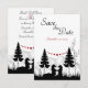 Charmiga Silhuett Berg Björnpar Spara Datum Bröllopsinbjudan Kort i Svart, Vitt och Rött.