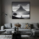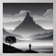 Inför vidden betraktar en resenär berget som reser sig som en himlens väktare. I svartvita nyanser frammanar scenen tystnad, styrka och introspektion och inbjuder till eftertanke över den inre resan och strävan efter det ouppnåeliga.