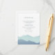 Elegant bröllopsdesign med en handmålad akvarell bergslandskapsdesign av Shelby Allison. Denna design finns för närvarande i blå, brun, grön och lila.