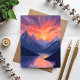 Bergskedja Solnedgång | Akvarell Sjö Landskapsmålning Kort