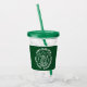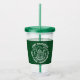 Möhippa-tumbler med en design med en lägereld, berg och skogsträd i grönt och vitt. Anpassa den med namnet på den blivande bruden eller brudtärnorna, lägerplatsens namn, datum eller annan information du vill inkludera