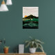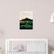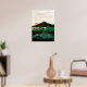 Bergslandskap för vattenfärgen abstrakt. Solnedgån Poster