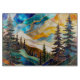Tillsätt en konstnärlig och modern touch till din kök med denna abstrakta glasmålade berglandskaps-skärbräda. Med flödande lager av teal, guld och varma toner och eleganta tallar skapar denna design en unik och lugnande naturinspirerad komposition.