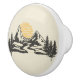 Enkelt kort illustration av bergsolnedgången i stil med bergen, sol och gräs träd dekoration