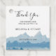 Blå vattenfärgsbergsområde, landskap, favorittaggar för Bröllop Tack. Lägg till namn och bröllop-datum för bruden och trimmen och ändra texten Tack.