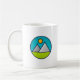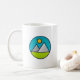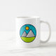 Bergsområden illustrerar emblemet kaffe mugg. För naturen älskare.