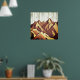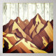Bergspanorama på Rustic Wooden Background Poster