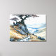 En charmerande scen med vintagar av vandrare som vandrar genom ett bergspass, med nyanser av guld, gult och blått skapande en lugn, fredlig scen av Vår och sommardagar.