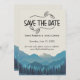 Meddela din bergbröllop med denna rustika spara datum-inbjudan med en design inspirerad av en lantlig retreat. Perfekt för utomhus-, äventyrs- eller destinationbröllop i bergen. Helt anpassningsbar med era namn och bröllopsdetaljer.