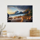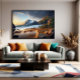 Fördjupa dig i den lugna stämningen i detta episka landskap. Med majestätiska snötäckta berg som möter de gyllene vågorna på en sandstrand, fångar detta konstverk den perfekta harmonin i naturen. Perfekt för väggdekor för att ge lugn och äventyr till ditt hem.