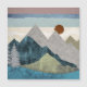 Moderna landskap med ett unikt färg och mönster som visar ett bergslandskap med en tvärgående skylt.