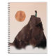 Denna anteckningsbok presenterar en abstrakt collage av en liten figursitta på ett berg som är bästa ovanför molnen som grubblar naturen av universum som löneförhöjningar för en orangesol.