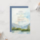 Bergsbröllopsinbjudan med scenisk vattenfärgsdesign i skuggor av dammig blått och grönt. De otillgängliga områdena är bergsområden, grönområden och gräs träd, sjö och ett lätt himlar. Hela texten är redigerbar, inklusive "gå med oss i bergen". Om du vill matcha produkter kan du bläddra i min samling av Mountain Sjö.