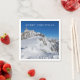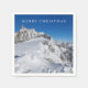 En vacker syn på ett berg täckt av snö och meddelandet "God jul" tryckt på pappra blöjor.