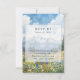 Ett elegant RSVP-kort med en akvarell av bergsvildblommor på en blomsteräng, med dina detaljer i chic typografi. Designad av Thisisnotme©
