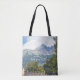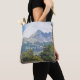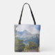 Tote Bag med ett foto av det stora sommarlandskapet. Vi ser bergstoppar, blå himmel och träburkar mellan träd. Underbar gåva till natur, turism och älskare. Anpassa den här sidan och lägg till ditt eget meddelande. Om du vill ha fler ändringar (teckensnitt stil, färg, textposition) klickar du på Redigera design.