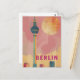 Denna vintage-stil poster upp den koniska silhuetten från Berlins TV-Torn (Fernsehturm), som står hög mot en minimalistisk retrobakgrund. Den djärva kontrasten och de blekna tonerna frammanar andan i halvseklets design, och fångar upp den moderna elegansen i Berlins skyllin. En slående hyllning till en av de mest igenkännliga landmärkena för Tysklanda - perfekten för älskare av vintage resor konst och stadsplanering.