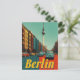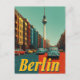 Denna slående vintageaffisch visar det ikoniska TV-tornet i Berlin som reser sig över en livlig gatuscen fylld med klassiska bilar från 1950-talet. Konstverket fångar anden av mitten av 1900-talets Berlin med varma, dämpade toner och retrotexturer, och blandar historisk arkitektur med charm från efterkrigstidens bildesign. En nostalgisk hyllning till en föränderlig stad, perfekt för älskare av vintage-resekonst, klassiska bilar och Berlins unika urbana atmosfär.