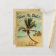 Den nye vintagen Bermuda räddade vykortets datum skryter tonvis med charm med en coola i mitten av århundradet stil. Med en tropisk träd i handflatan på en vit sandstrand med ett blått hav och puffa moln i blå himmel, kommer ditt målbröllop att göra alla upphetsade när de får vintagen Bermuda Spara vykortet Datum.