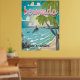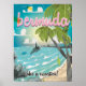 Bermuda vintage resor poster tecknad. Besök Bermuda-ön med den här semesterkonsten för poster på stranden.