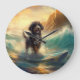 Bernedoodle Beach Surfing Painting Stor Klocka