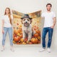 Bernedoodle i Höst löv Thanksgiving Art Fleecefilt