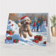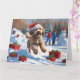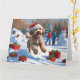 En helgdag med hjärtslitande hund i snö, som bär en julhatt och omges av färgfulla presentlådor. I bakgrunden bygger barn snögubbe bredvid ett Julgran som är täckt av snö och skapar en glatt vinter under. Perfekt för att sprida helgdag och fånga julens magi.