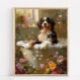 Förhöj din badrumsdekor med vår fantastiska canvastryck som visar en lekfull Berner Sennenhund som njuter av ett avslappnande bad fullt av bubblor och vackra blommor. Denna charmiga konst ger en touch av värme och personlighet till ditt utrymme, vilket gör det mer inbjudande och glädjefullt.