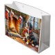 A cozy Christmas artwork featuring a majestic Bernese Mountain Dog sitting beside a glowing fireplace adorned with stockings and sparkling Christmas lights. This festive holiday scene beautifully captures the Bernese Mountain Dog’s gentle, loyal nature and love for family, making it an ideal addition to any dog lover’s home decor. Celebrate the warmth and magic of the season with this heartwarming pet-inspired artwork.
