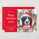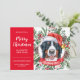 Den här vackra Bernese Mountain-Hund med grön är säker på att ge dig helgdag cheer! I teckning ingår en söt svart, vit och brun hund med en julhatt, omgiven av helgdag, bär och pinekonar. Du kan anpassa utformningen helt genom att ändra hälsning på banderollen och hälsning, namn och husdjur namn på den lämnat sidan. Det här är en snyggt, men en billig utformning av platta kort kan anpassas, och det är perfekt för burmesiska hundälskare, bernie hund, hundälskare och djurälskare.