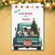 Ett tårblått pickupt lastbil bär ett dekorerat Helgdag träd och presentkort paket på framsidan av detta söta julkort. En vacker Bernese Mountain-Hund ser ut från skaften. En rustik träskylt på stötfångaren säger "Julturen". Överst på kortet finns en rad Helgdag och anpassningsbar som för närvarande säger "Från vårt hus till ert". På kortets insida finns mer fält för att du ska kunna anpassa.