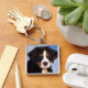 Bernese Mountain Hund Large Premium Square Keychain Fullt-färg, utskrift av fullt Silver Färgad Charm & Ring UV Resistant and Watersecure Add Photos, Artwork and Text No Minimum Order