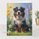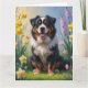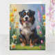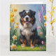 En glad hund sitter fridfullt på frodig grön gräs, omgiven av färgrika vårblommor under en mjuk blå himmel. Denna digitala oljemålning fångar ett lugnt ögonblick med uttrycksfulla penseldrag, varma färger och en känsla av mild glädje.