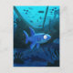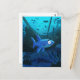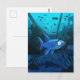 Vykort som visar en något orolig tittar haj som simmar runt tecknaden. 2019 Michael C. Paul https://mikepaulart.com