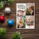 Traditionellt julfotokort med God jul och ett gott nytt år med fyra foton av din familj och grönska och röda bär.
