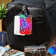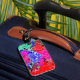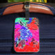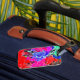 En abstrakt konstdesign av bär och löv i vibrerande färg.