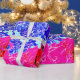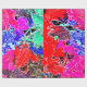 En abstrakt konstdesign av bär och löv i vibrerande färg.