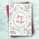 Sage löv med guld och röda bär runt ord "Joy to the World" i chic och hälsning och namn runt omkring det, ett vackert sätt att sända helgdag. Använda ANY-teckensnitt och teckensnitt färg. *Lägg till ett foto på baksidan också. Välj Projektionsyta för högsta pappra och HD-kvalitet för bästa utskriftskvalitet.