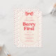 Berry First Birthday Pink Bow Strawberry Inbjudningar