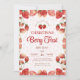 Berry first birthday pink strawberry cute girl inbjudningar