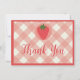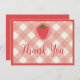 Berry First Birthday tackkort. Med röda jordgubbar med rosa bakgrund. Perfekt för dina flickor 1:a födelsedag firande! Koordinerar även inbjudningar, tecken och dekor.