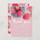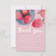 Say thank you in the sweetest way with this adorable Berry First Birthday thank you card. Featuring a soft pink background with playful strawberry illustrations and a charming retro plate detail, this design includes a photo space to showcase your little one. Whimsical typography and gentle colors create a fun yet elegant keepsake, perfect for thanking guests for celebrating such a special milestone. A delightful finishing touch for strawberry-themed first birthday parties and summer celebrations.